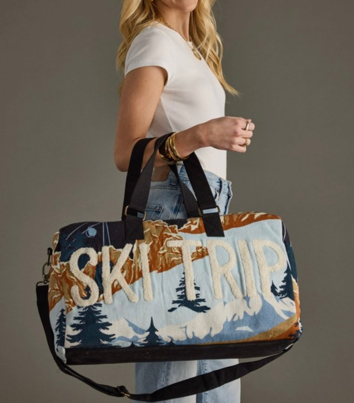 Dark Blue Ski Trip Duffle Bag
