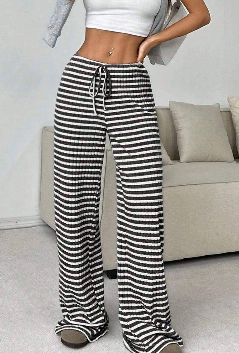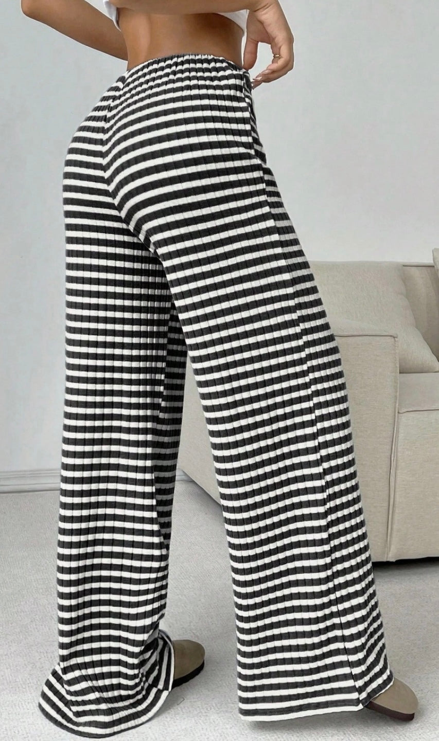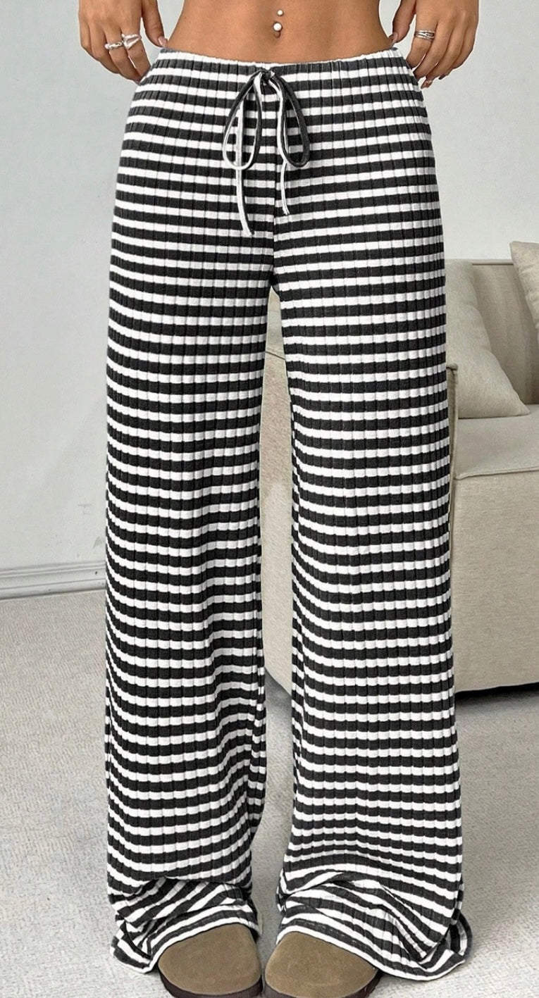 Black Stripe Wide Leg Lounge Pants