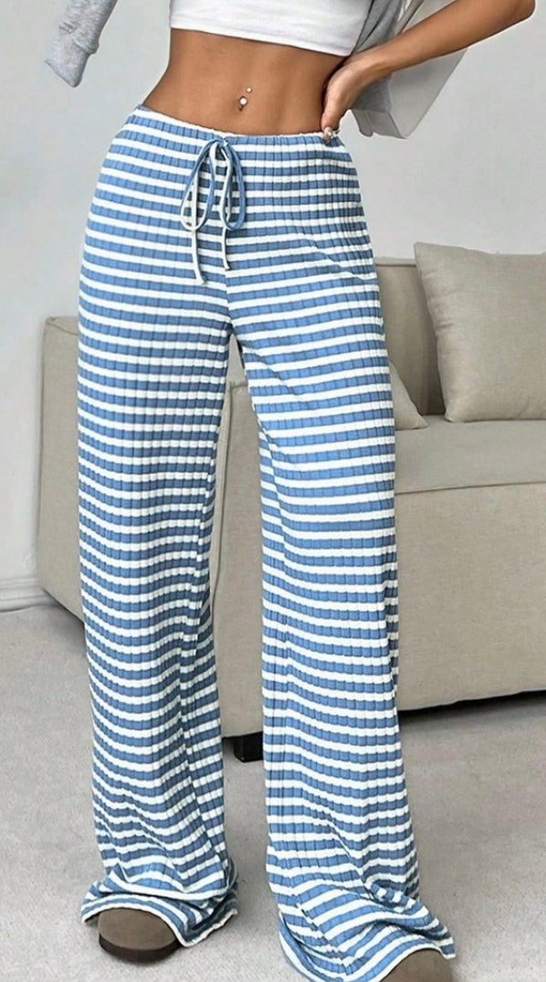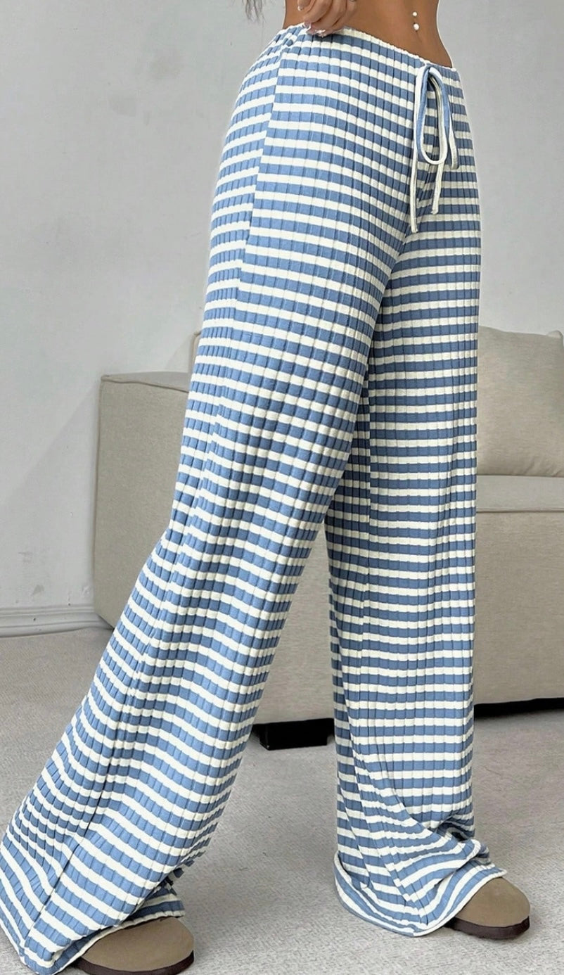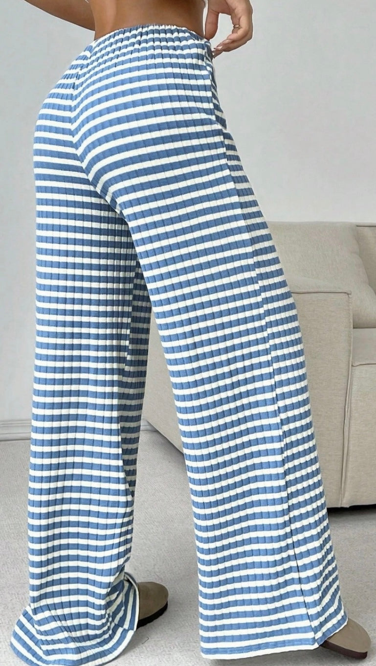 Blue Stripe Wide Leg Lounge Pants