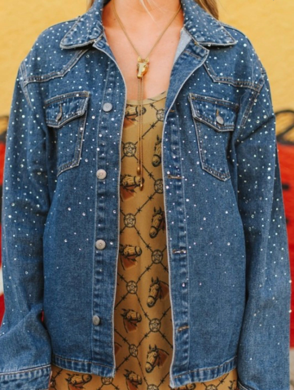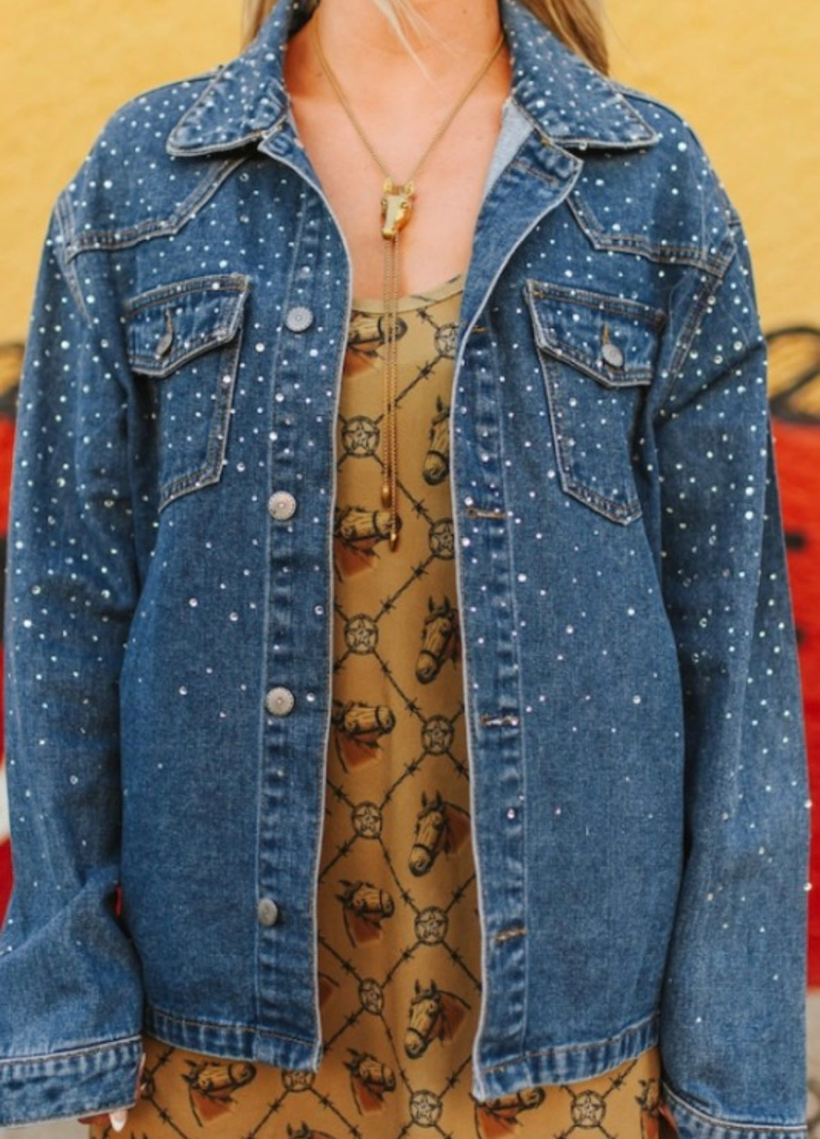 Dark Wash Button Down Rhinestone Denim Jacket
