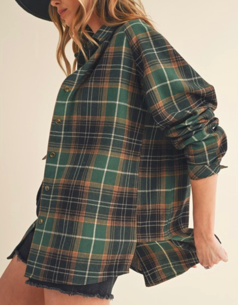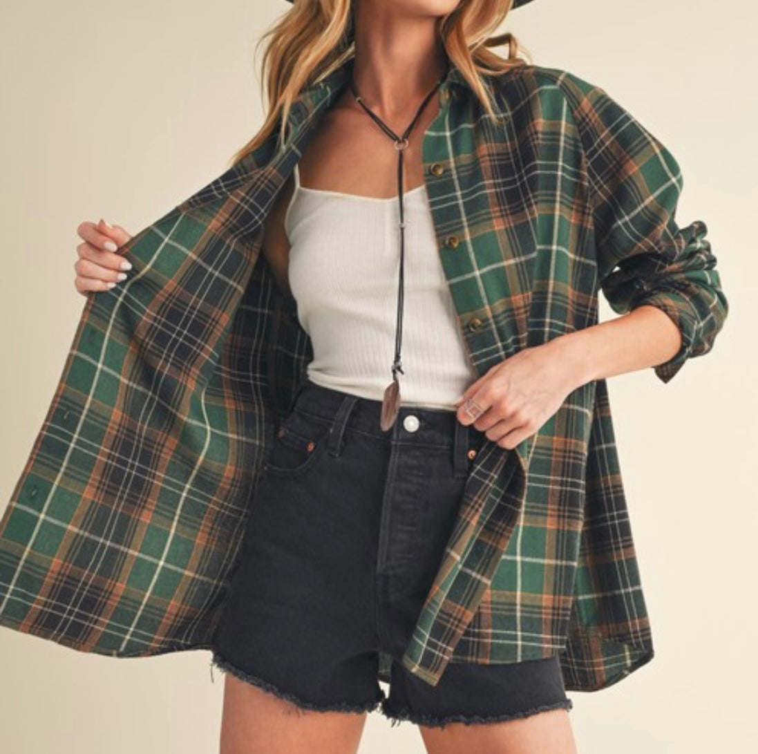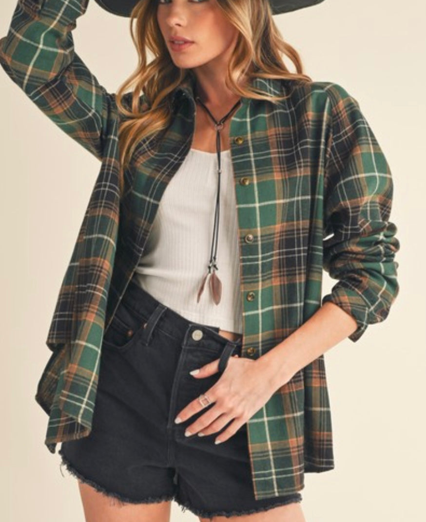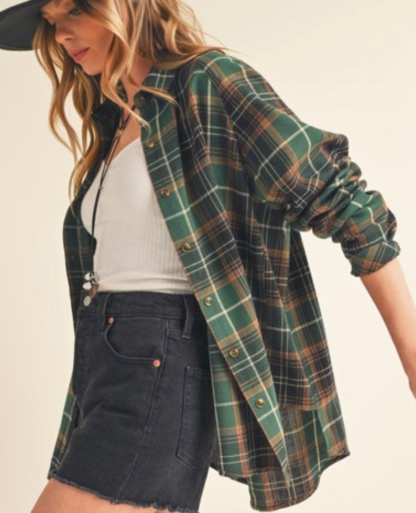 Green Plaid Flannel Shirt