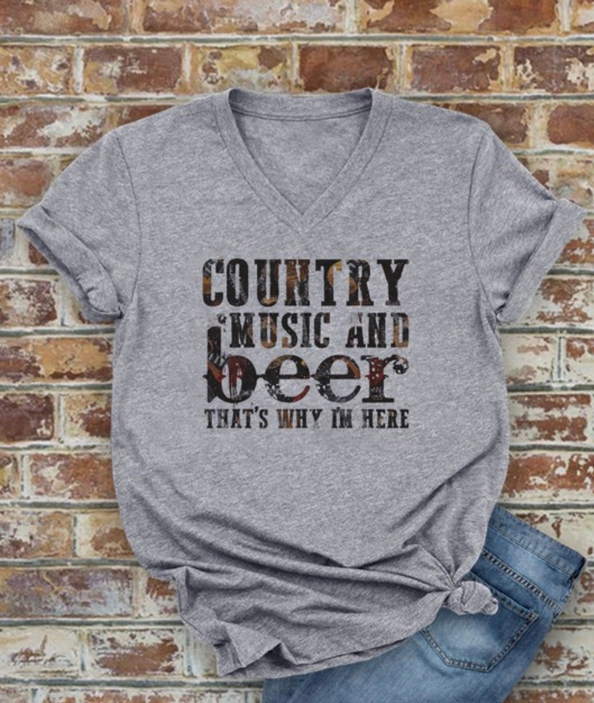 Heather Grey Country Music And Beer Tee