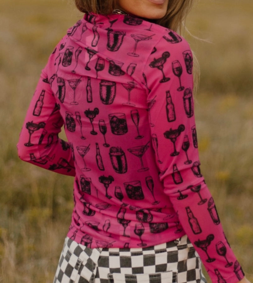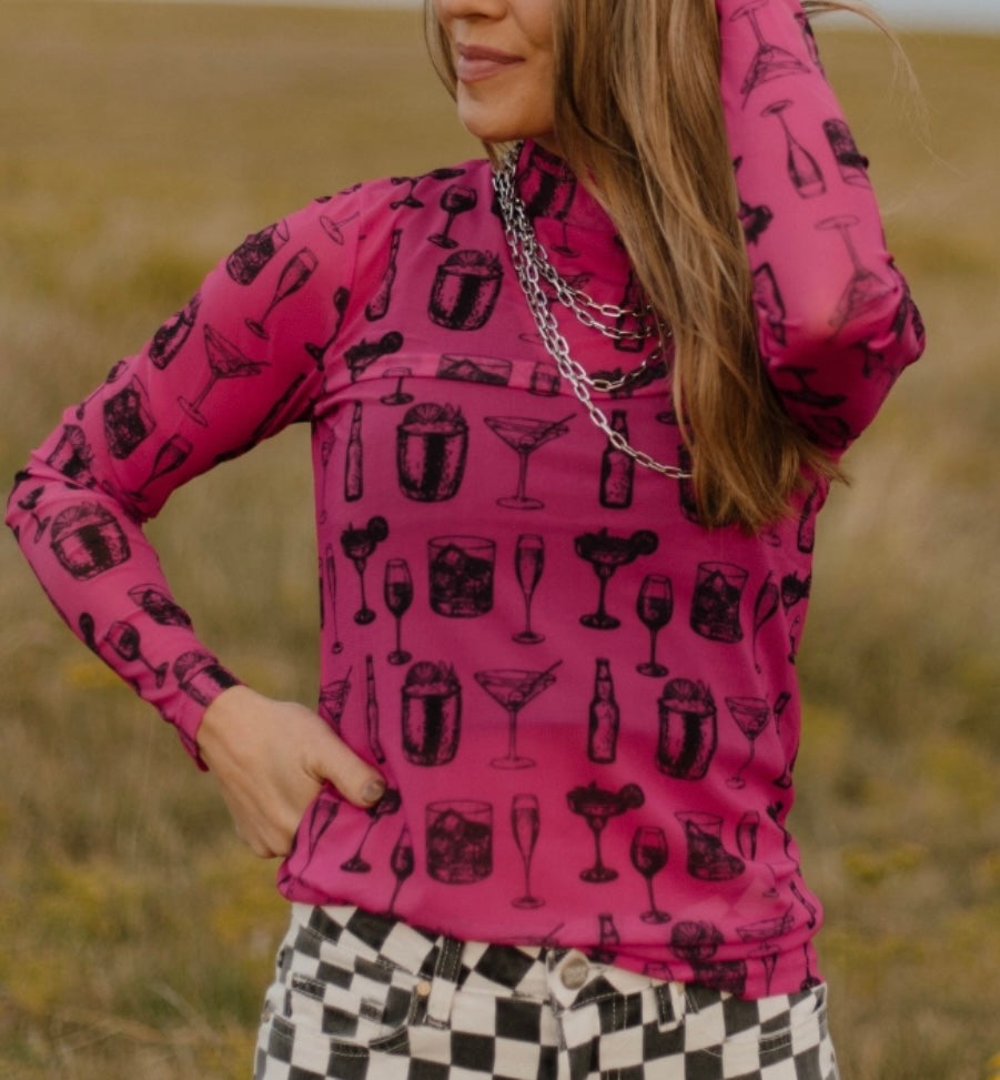 I'll Drink to That Pink Mesh Top