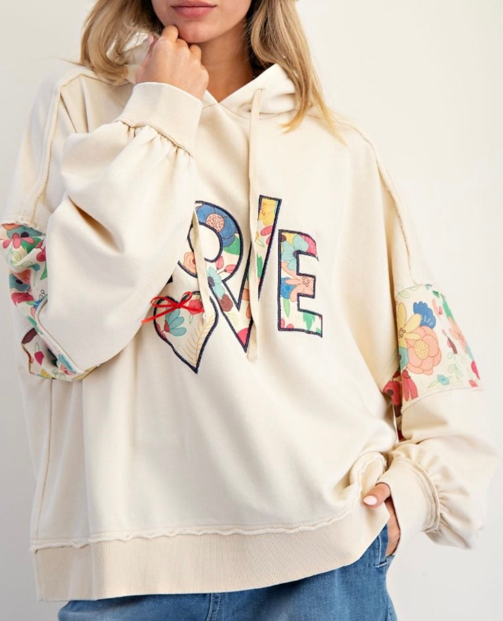 Ivory Love Patch Hoodie