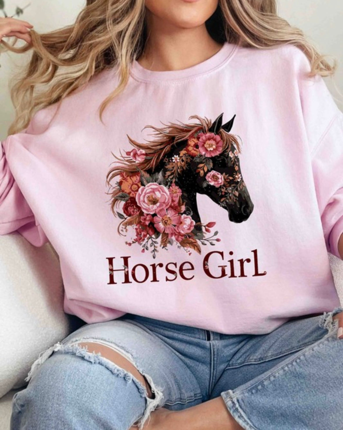 Pink Floral Horse Girl Tee