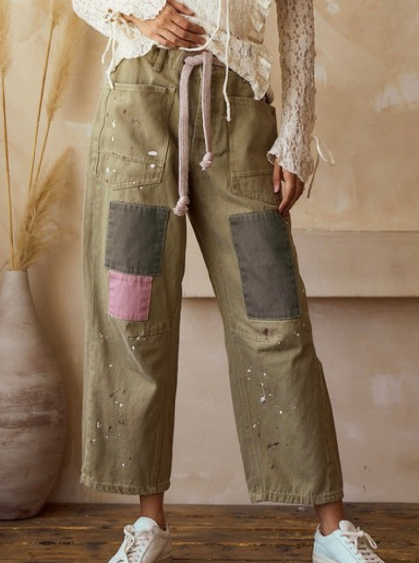 Olive Multi Patch Vintage Jeans