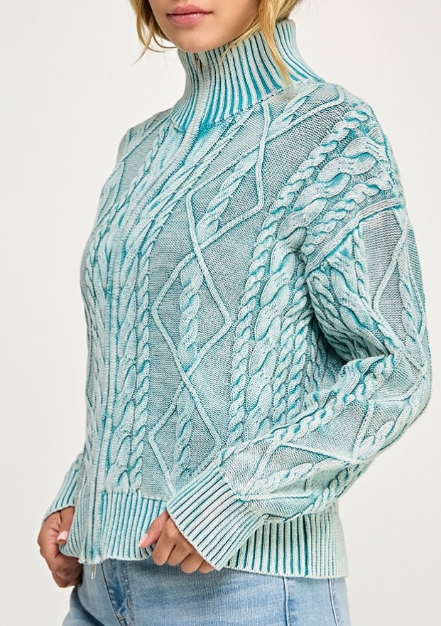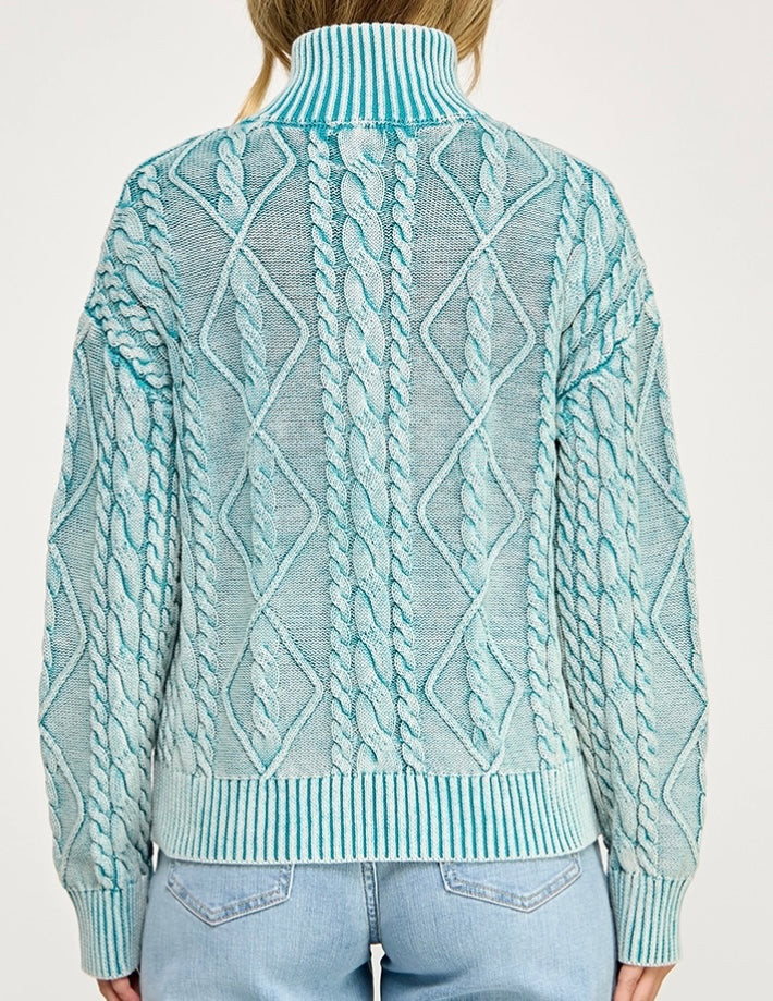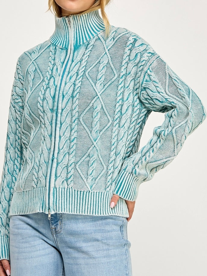 100% Cotton Washed Jade Two Way Zip Cardigan Sweater
