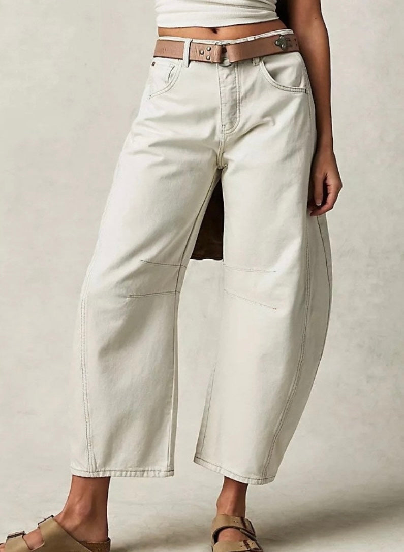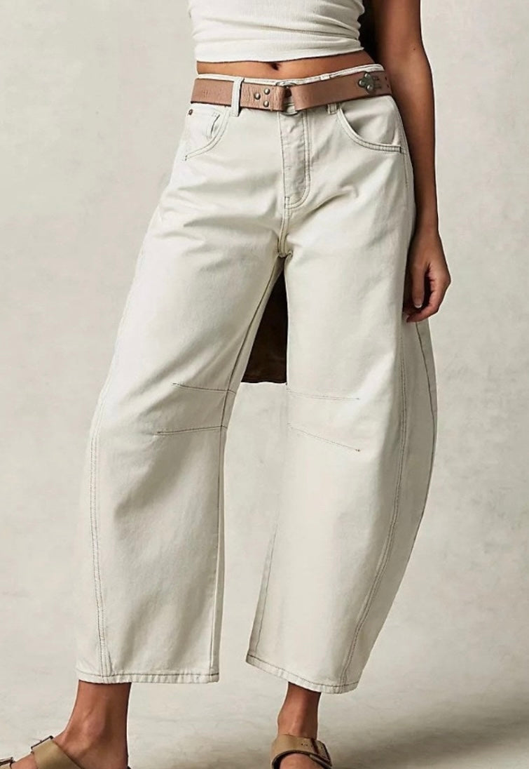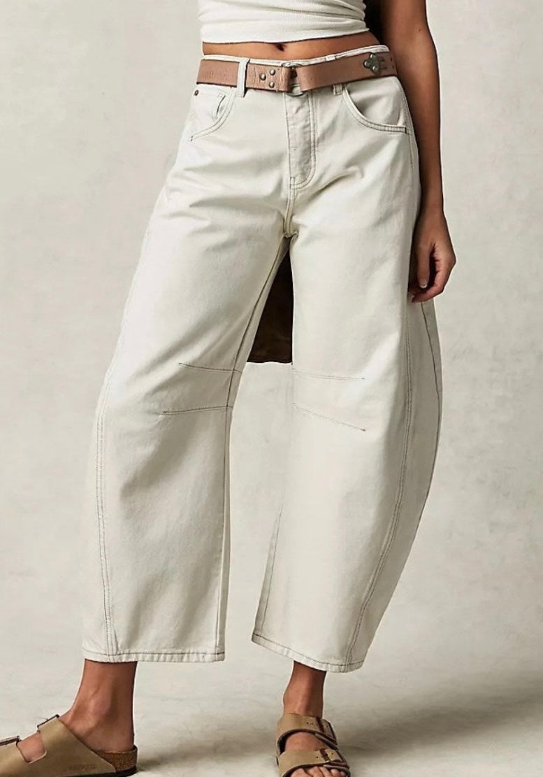 White Barrel Jeans with Top Stitch