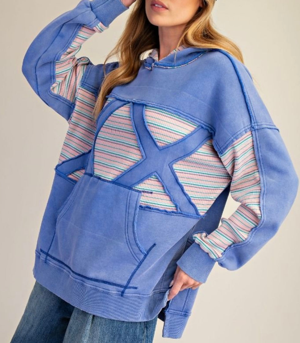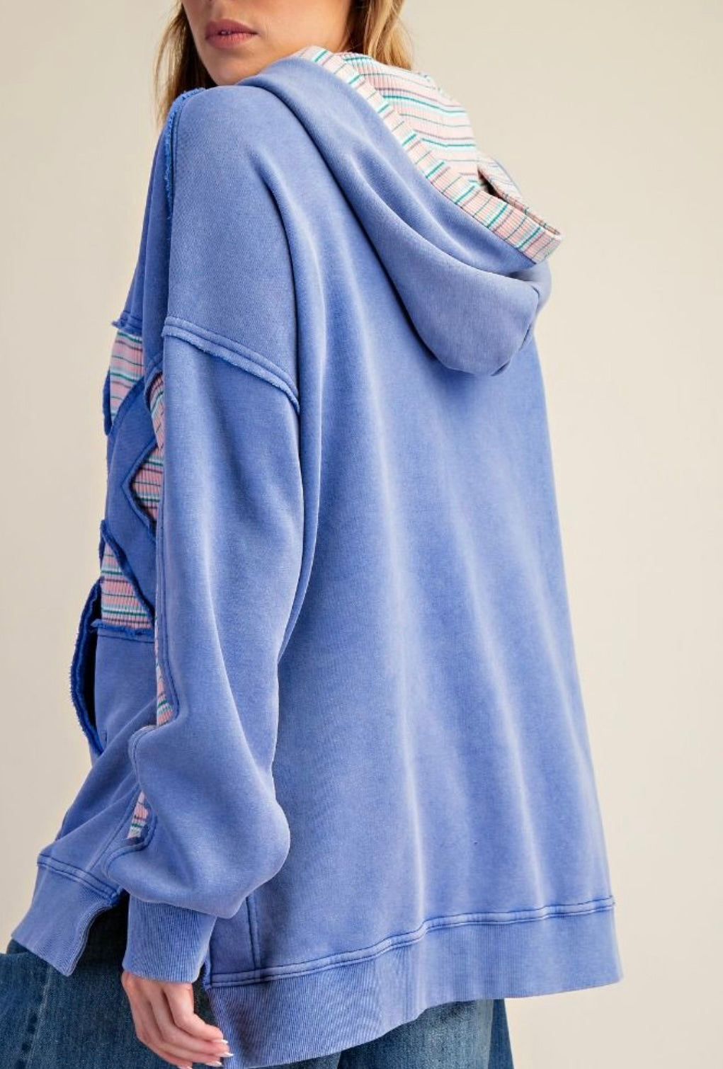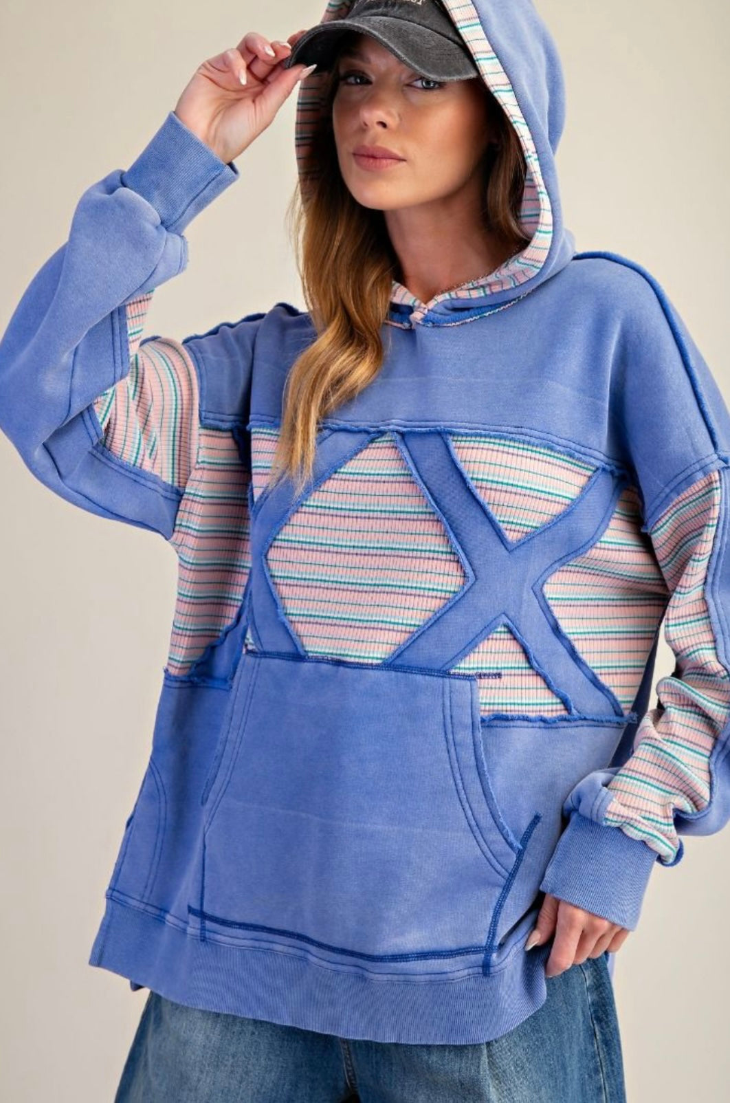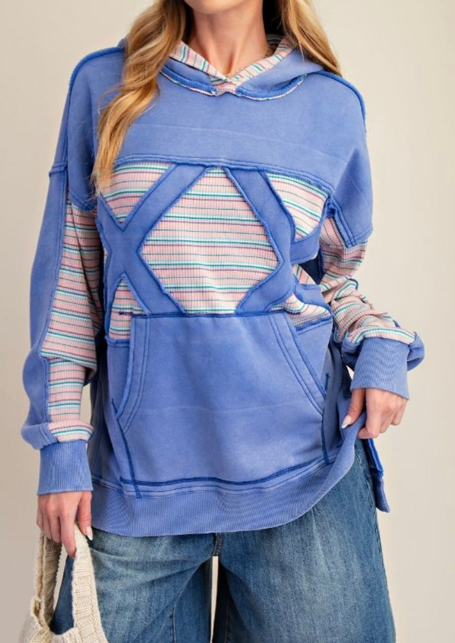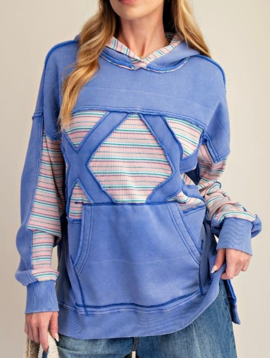 Blue Stripe Accent Mix Hoodie Sweatshirt