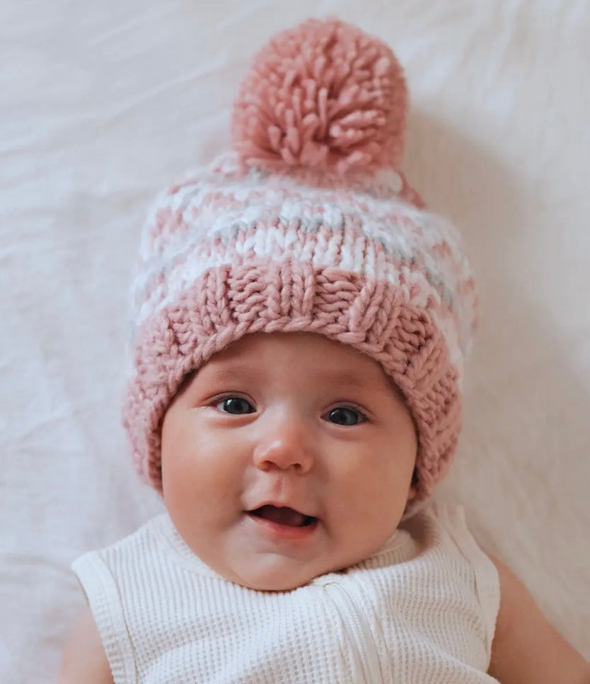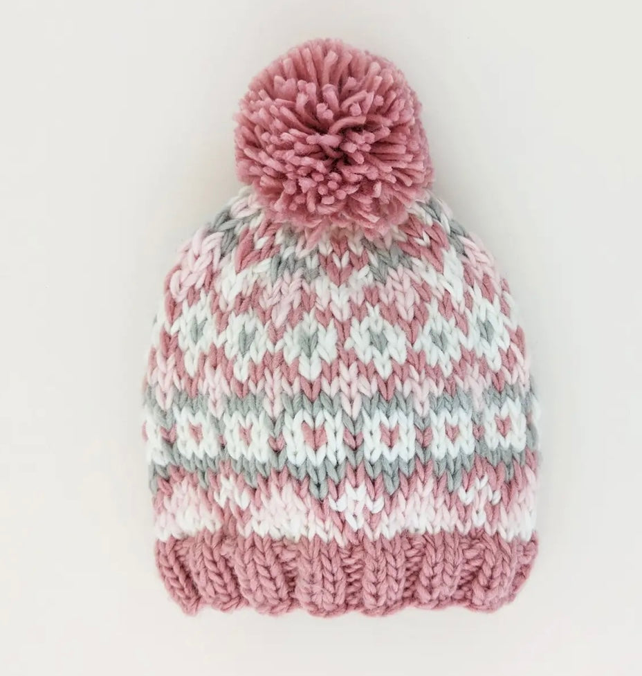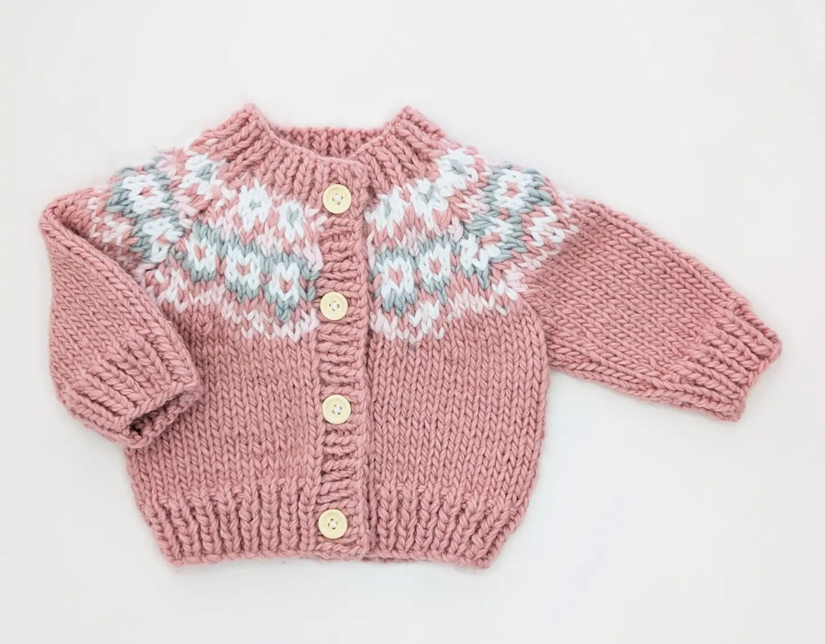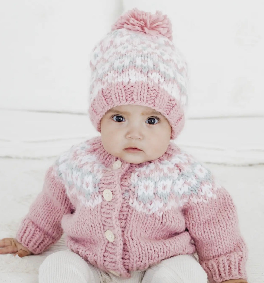 Fairisle Rosy Hand Knit Cardigan Sweater & Hat Set